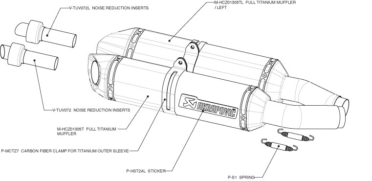 Trois matériaux de base sont utilisés pour créer le système d'échappement: le titane, l'acier inoxydable, la fibre de carbone. Le titane utilisé est composé d'une formule unique en vertu d'un contrat d'exclusivité par un fournisseur japonais. Il est donc beaucoup plus résistant et plus durable que le titane sur le marché. Le titane utilisé par Akrapovic est 40% plus résistant et plus léger que l'acier inoxydable.